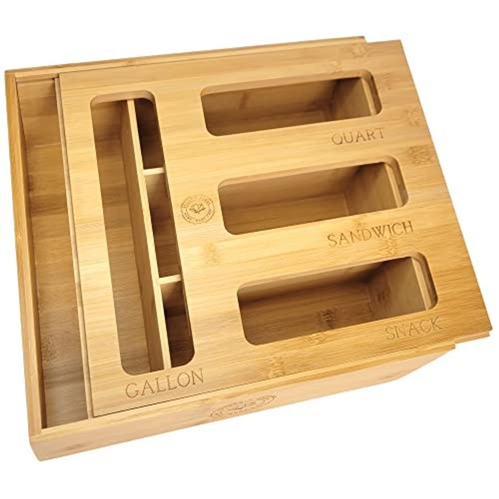 From snack bags to giant gallon bags, this organizer lets you throw out the crummy cardboard box they came in so that you can store them in style. It's made from sleek bamboo — not plastic — and there's no assembly required. Simply place it inside of a drawer and it's ready to go.