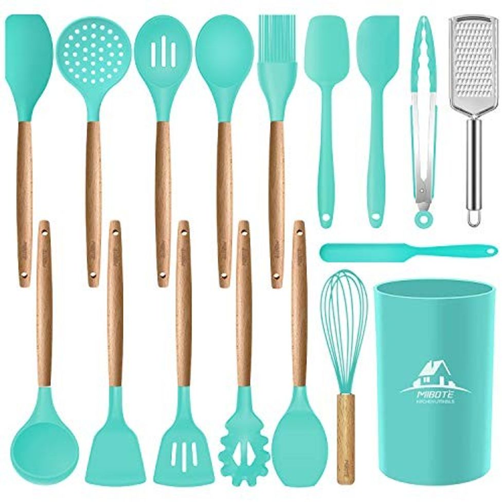 With their non-stick silicone heads and sleek bamboo handles, these utensils are sure to become a welcome addition in any kitchen. Each set covers all the bases, as it includes rubber spatulas, a whisk, cheese grater, tongs, and more. Plus, you also get a caddy to keep them all stored together.