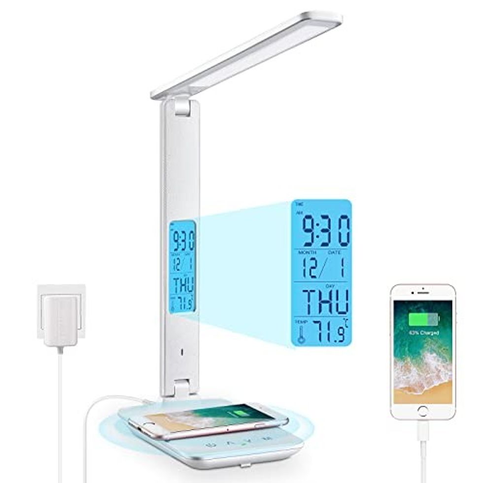 Not only does this LED lamp have a compact footprint that'll take up hardly any space on your desk, but it laso features a wireless charger built into the base. And if your phone isn't compatible with wireless charging? There's still a bonus USB port located in the back that you can use to power your devices.
