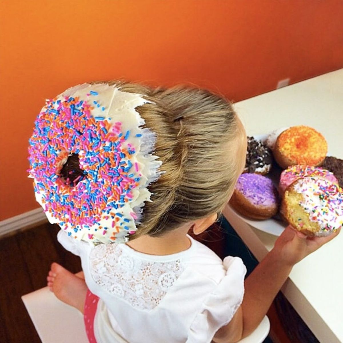 The biggest day of the year is officially here. It’s National Donut Day, y’all! While this most sacred of days does have its perks — namely a free pass to eat this sugary-sweet confection to our heart’s content — this year, we’re exploring one of the sillier aspects of our favorite day of the year — giving our kids a wacky donut-inspired hairdo. We’re not talkin’ your run-of-the-mill donut bun. From brunette chocolate donuts to hairstyles featuring real frosting (what?!), we’ve gathered some of the cutest kids on Insta, proudly wearing their donut-day best. So whether you’re a mom, dad or enthusiastic aunt, scroll through these crazy sweet kids’ hairstyles and find the perf donut-inspired ‘do for National Donut Day, Halloween, crazy hair day and beyond!