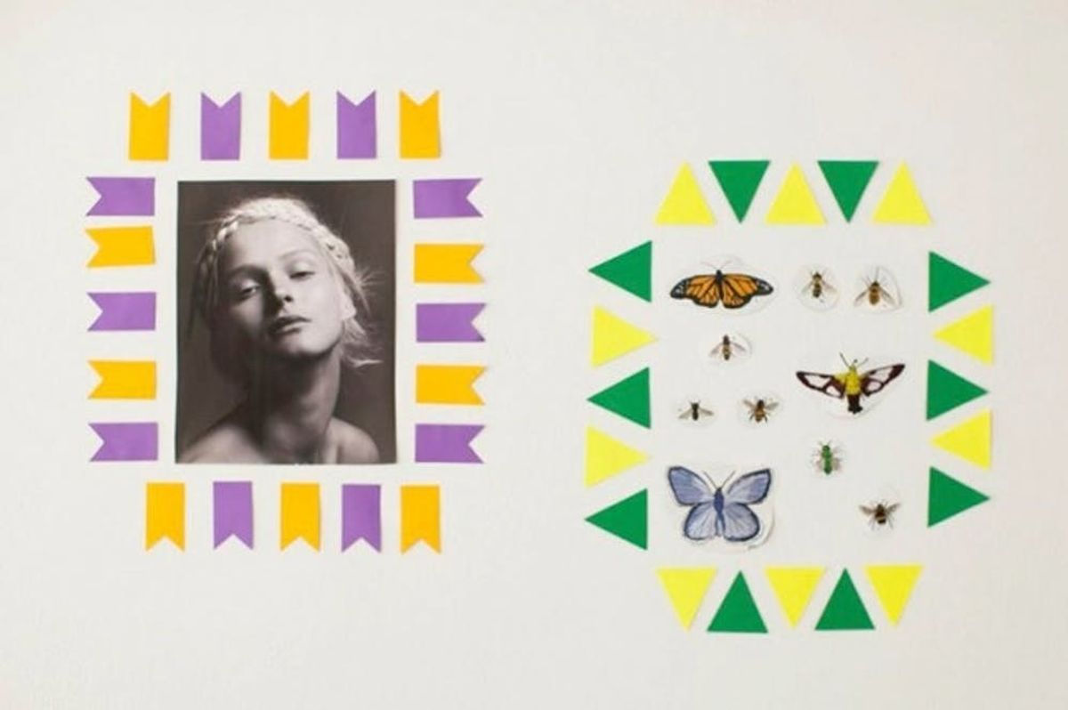 3. Paper Punch Frames: With nail holes a no-go, you can forget about hanging all your sweet posters and torn-out Vogue pages in actual frames. Try “framing” your art with colorful paper designs made with a paper puncher. (via Brit + Co)