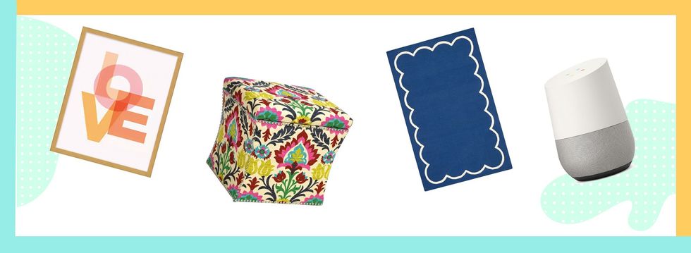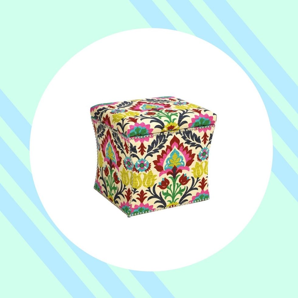 One Kings Lane Merritt Storage Ottoman ($225): You'll quickly learn that multi-purpose items will become your decorating BFF. This one, clad in a stunning print, doubles as extra storage and a place to stash your trinkets.