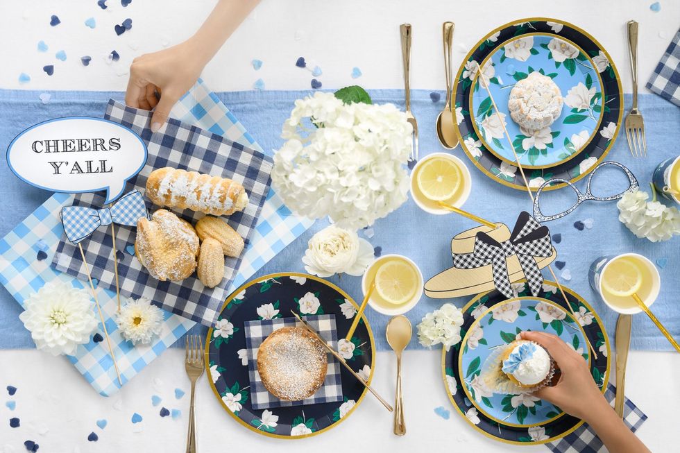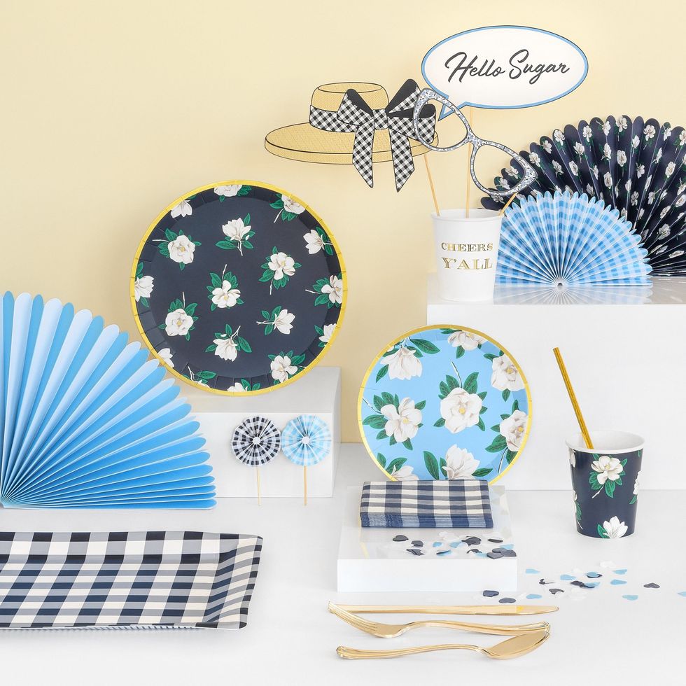 The good news is you can also stock up on individual items. Accent what you already have with their patterned plates, phrase-printed cocktail napkins, gold cutlery, confetti, cups, and decorative fans. Everything starts at $4 (with most items costing less than $10!) and can be delivered straight to your door.