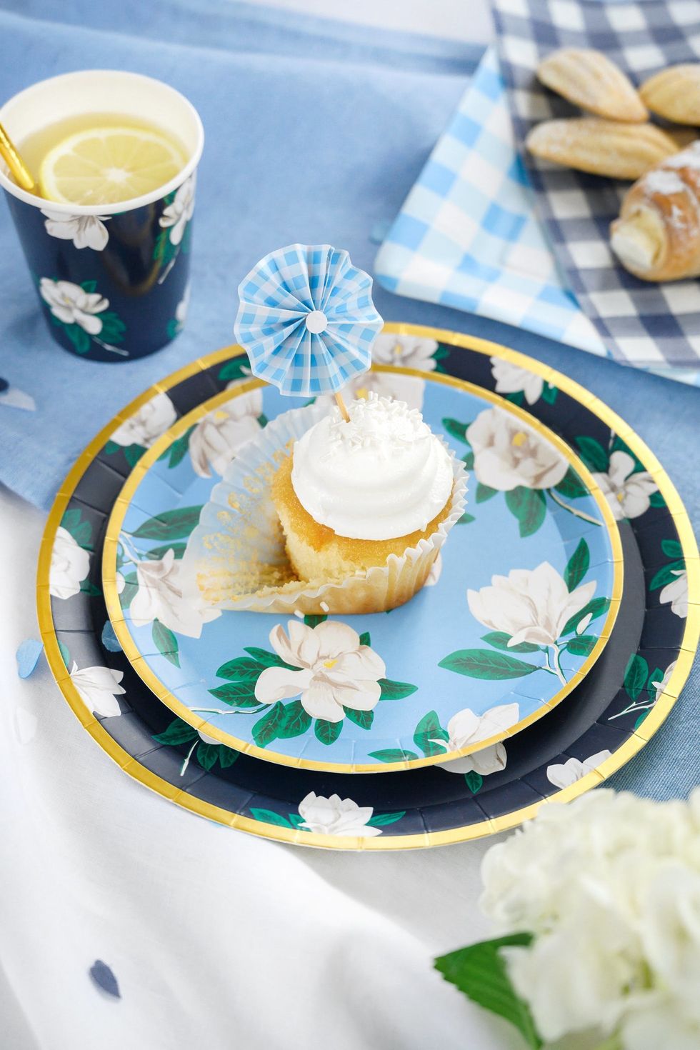 If there's one thing we know about Draper James, it's that there's no shortage of cheery patterns (especially gingham)! You'll see this again in the collab with Coterie, but this time, it's combined with their newly debuted magnolia flower print. (Spoiler Alert: You're in for one *adorable* spread.)