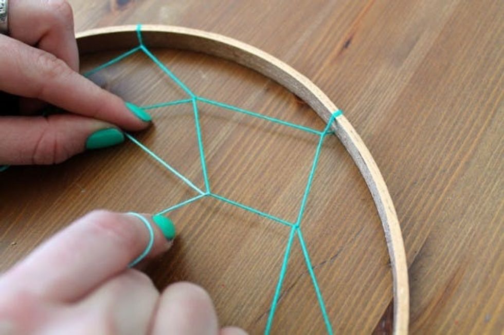 The nice thing about creating your own dreamcatcher is that you can totally improvise with colors, patterns, and other details. Feel free to stray off the perfect pattern course!