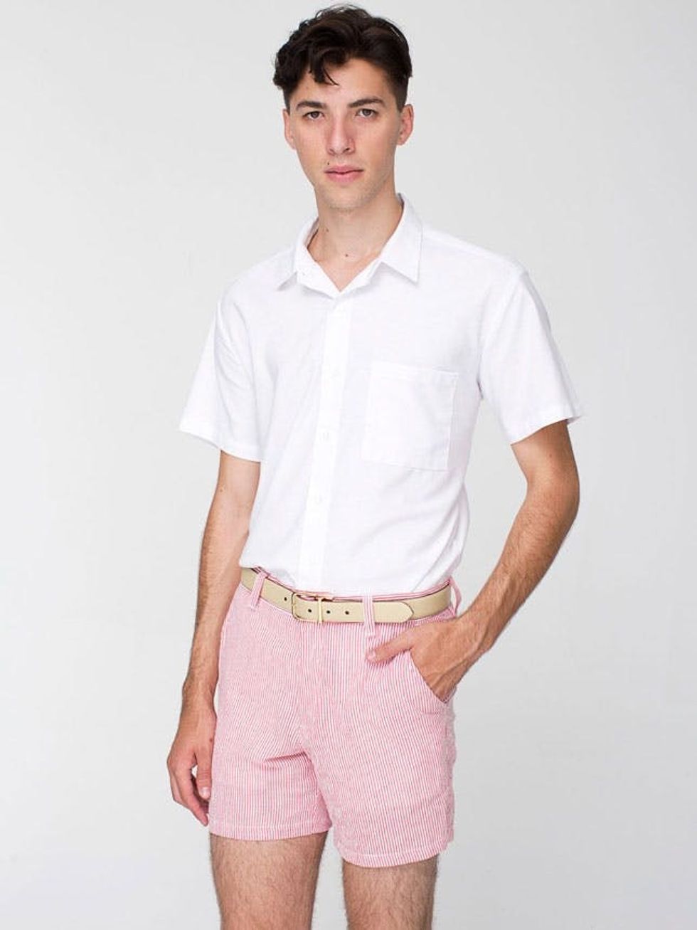 Short shorts for dudes are officially a thing. You know when a trend finally makes its way over to the Wall Street Journal, it’s probably time for us to check it out. Cargo shorts that dip past the knee have long been out of style, but who knew that shortened hemlines would make their way into men’s fashion so soon? And we’re not just talking ’70s-style athletic shorts and Euro swim trunks. Say hello to five- and six-inch inseams and sayonara to tan lines that extend beyond the mid-thigh.