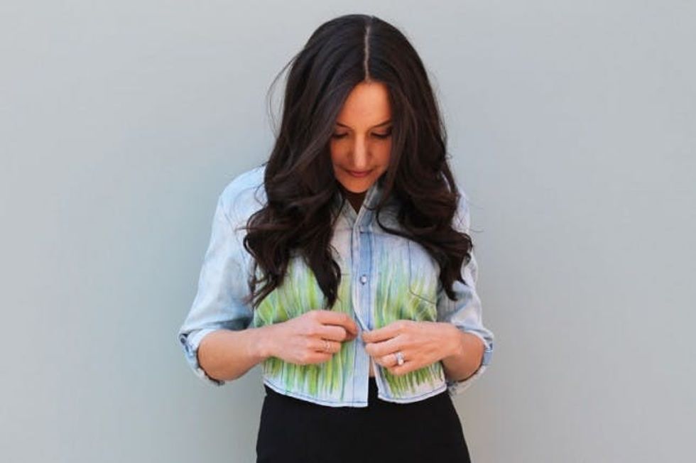 The classic denim or chambray shirt is a year-round staple. But what happens when you find yourself with one too many faded button-downs? Tie dye happens! We busted out the supplies from last month’s Ombre Scarves Brit Kit and got to work on three tired chambray shirts using stencils, rubber bands, and brushes.