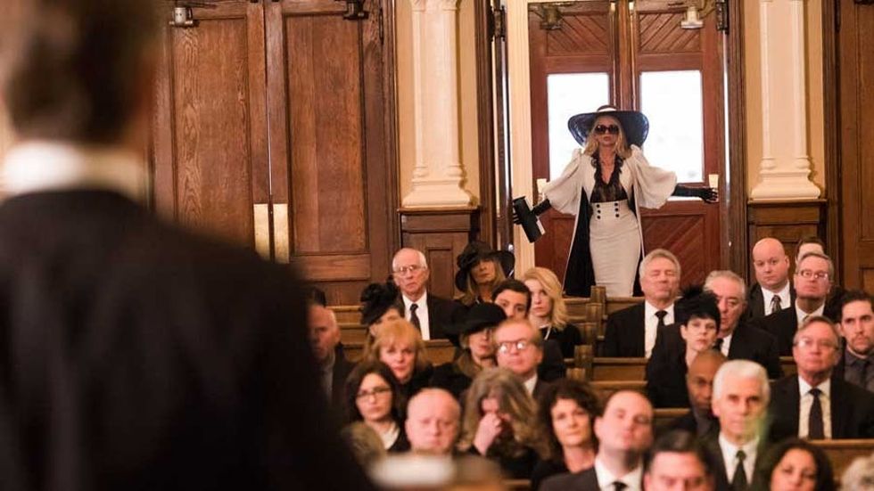 With that revelation out (at least to Anders, Blake doesn’t know yet), that means Alexis (Nicollette Sheridan) is about to whirl into town. She interrupts Thomas’ funeral (Blake’s eulogy, no less) with a “Sorry, I’m late. Traffic was a b*tch,” and everyone looks stunned.