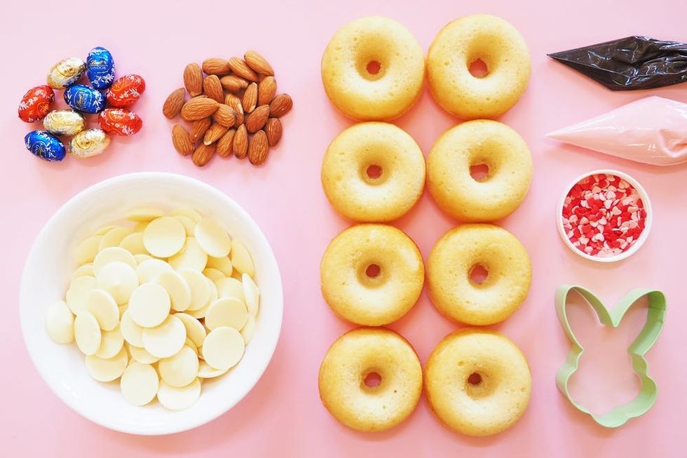 Easter is only a few weeks away, and boy am I getting egg-cited. I love dreaming up sweet treats for this time of the year, so my favorite way to celebrate is indubitably with Easter eggs and dessert! Even though I don’t want to admit it, donuts are sometimes a staple in my diet — so dreaming up cute bunny donuts was bound to happen. Now go ahead and show some bunny you love them, by making them these adorable Easter donuts.