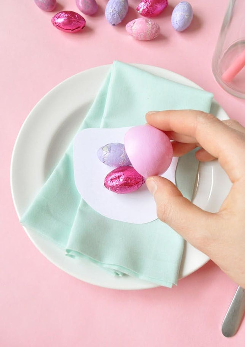 Sunny Side Up Easter Eggs: Adorn the table with these pastel eggs and surprise kids with a treat before they eat! (via Handmade Charlotte)
