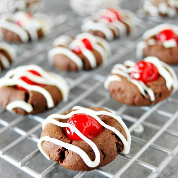 The only way chocolate cookies can get any better is by sticking sweet maraschino cherries in the center. A drizzle of white chocolate doesn't hurt either. (via The Kitchen Is My Playground)