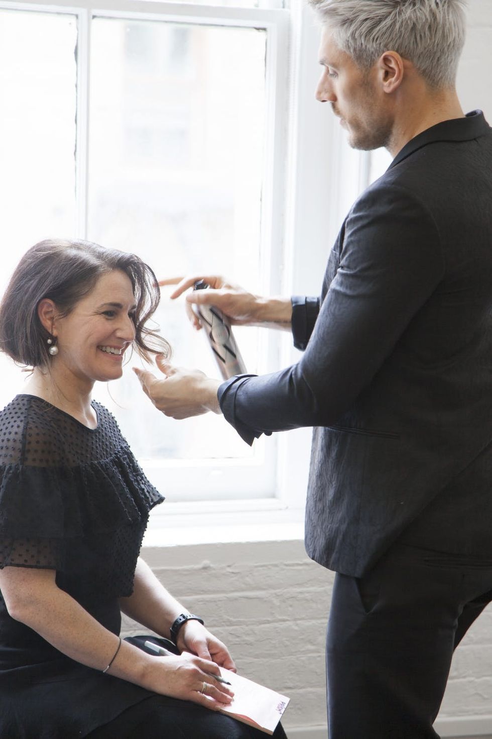 1. Tease the top section of your hair at the roots for volume. No teasing brush? No problem. Appleton prefers Color Wow Style on Steroids ($24) for a boost and grip. “After spraying on each section, massage in the product with your hands,” he advises.