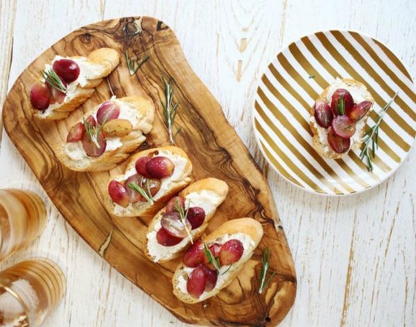Roasting grapes with chopped rosemary and a drizzle of olive oil infuses them with savory, herbal flavor while amping up their sweetness at the same time. Here, they’re accompanied by goat cheese atop slices of bread, but any creamy variety will do in a pinch. (via A Beautiful Mess)