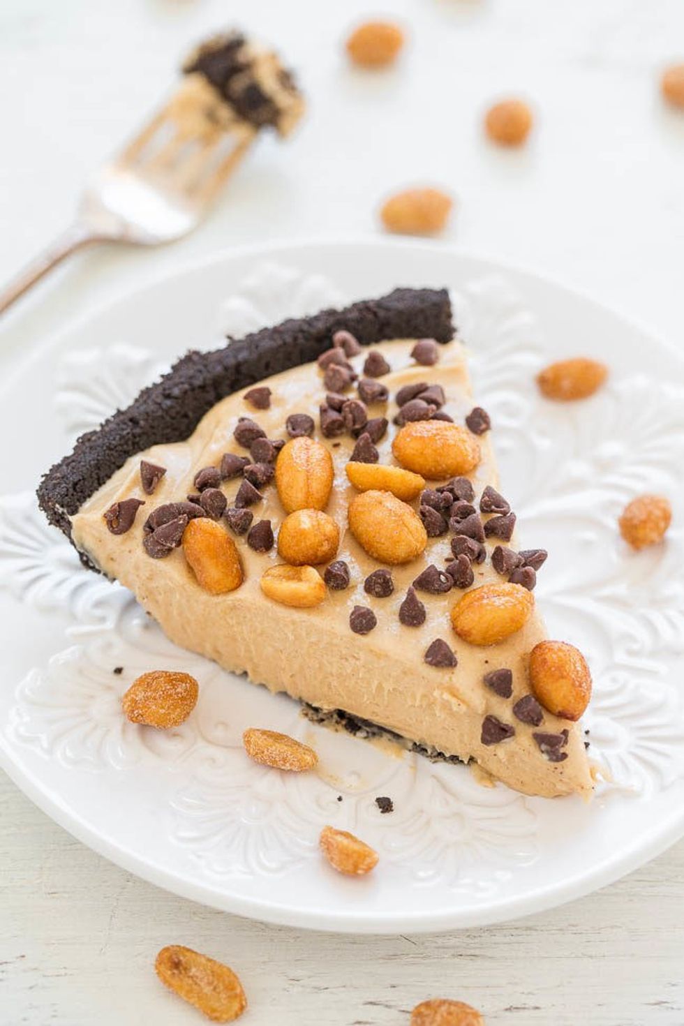 This no-bake pie comes together in 20 minutes and tastes like a delicious Reeses cup. (via Crowded Kitchen)