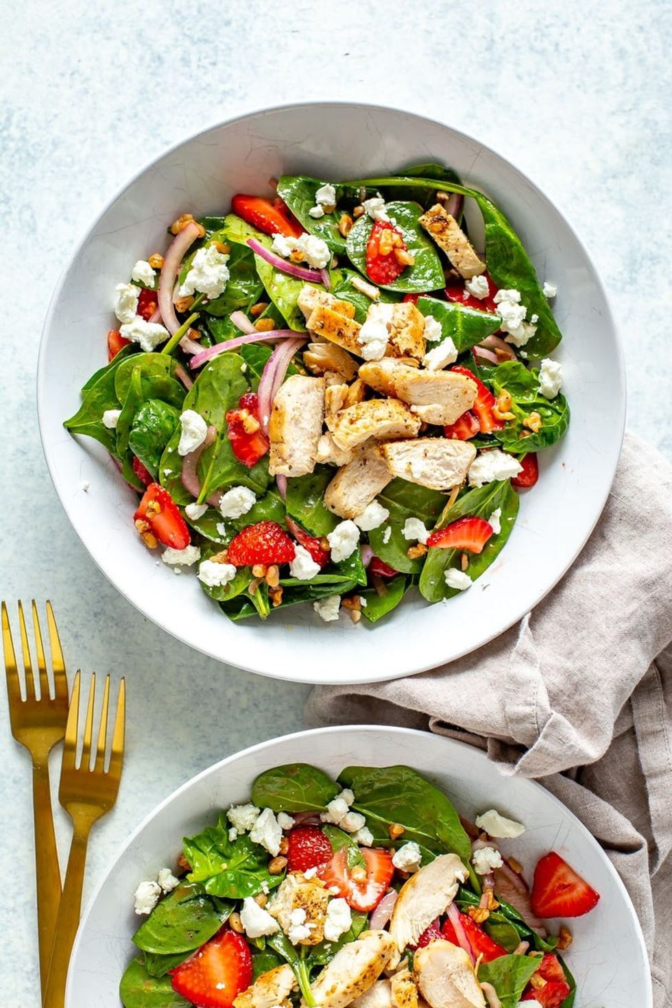 Immerse yourself in a burst of summery flavors with this captivating Strawberry Spinach Salad with Chicken. This vibrant dish combines the sweetness of fresh strawberries with the crispness of spinach leaves and the heartiness of grilled chicken. Tossed in a tangy vinaigrette, the salad perfectly balances refreshing and savory notes. The juicy strawberries add a pop of color and natural sweetness, complemented by the tender and flavorful chicken. (via The Girl On Bloor)
