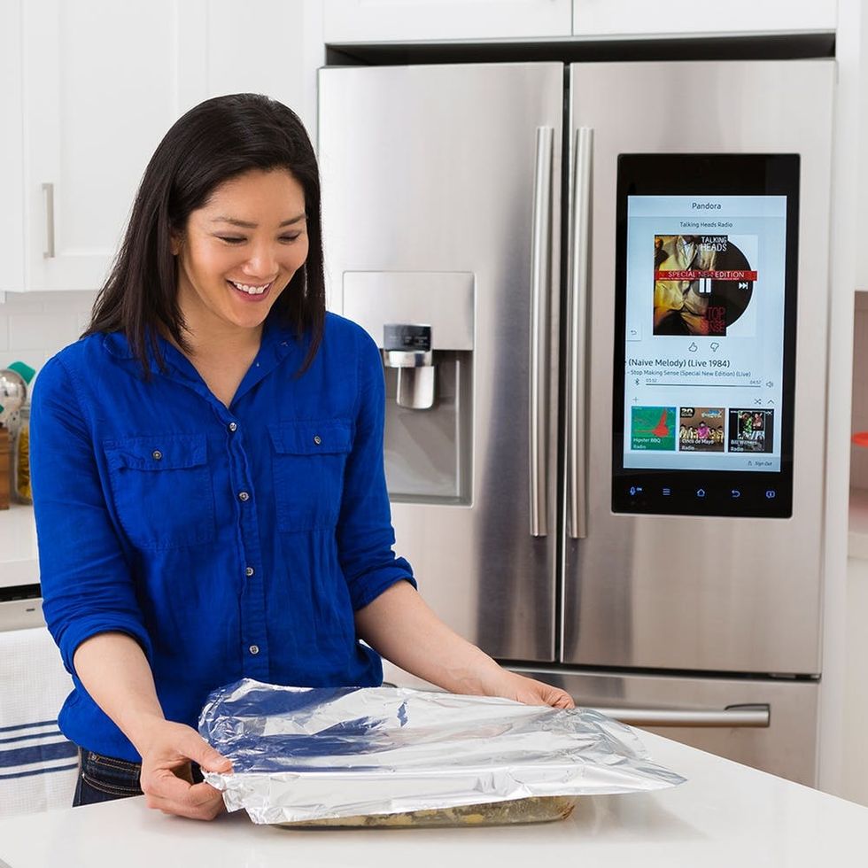 There’s no reason not to enjoy meal prep either. This fridge allows you to listen to music, catch up on your favorite podcast, or stream the latest season of a binge-worthy show.