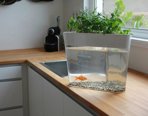 The EcoFarm fish tank is a a mini loop ecosystem that can grow small plants and herbs and fertilize them with your fish’s waste.