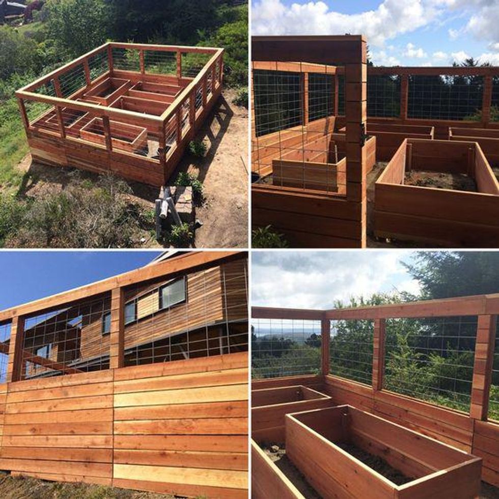We created a water irrigation system plus direct water access with a faucet and everything! After installing planter boxes, we stained the structure to match the color of our home. Then we planted the fruits and veggies!