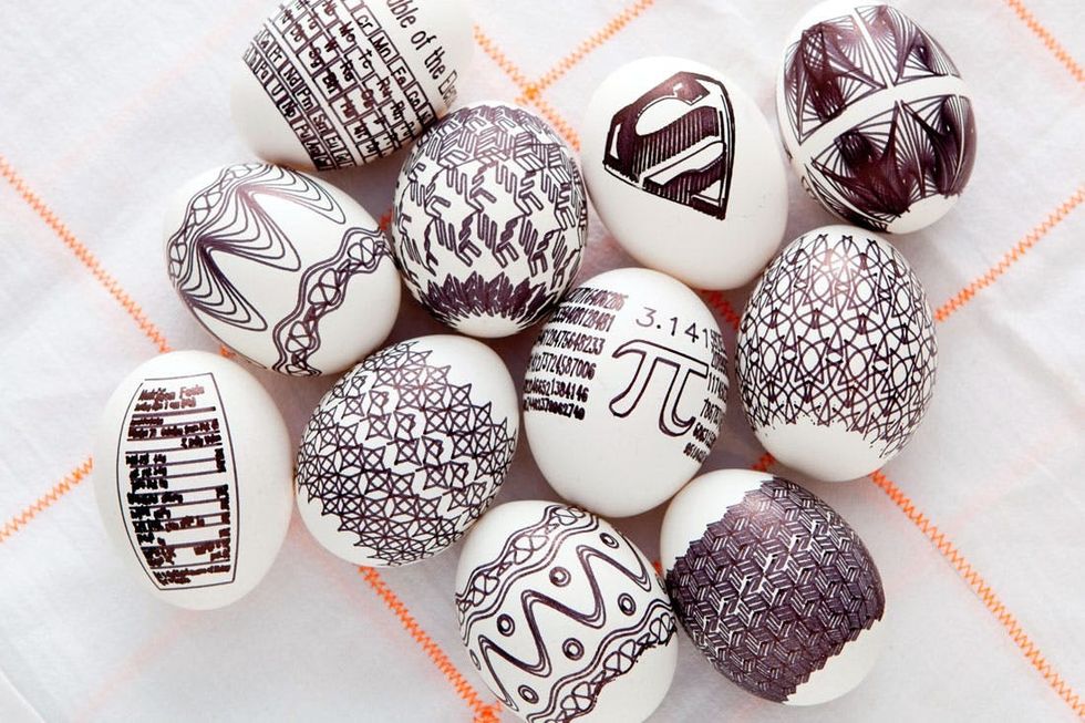 And the finishing touch, the perfect pen for decorating eggs. We tried using paint pens, thicker Sharpies and felt markers, but a fine point black Sharpie did the best job. You can find tons of egg designs on Thingiverse.