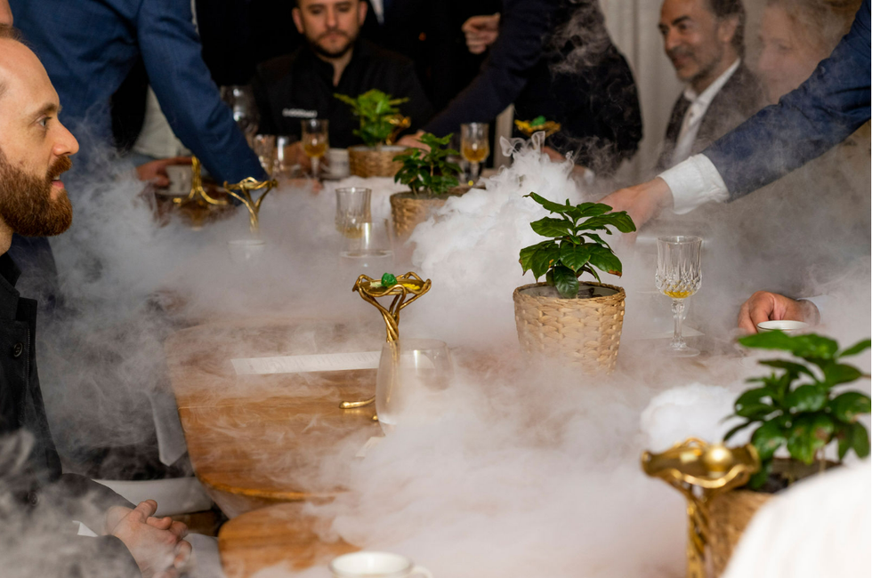 Desserts were equally inventive as the rest of the meal, but my favorite was the coffee field moment. Small coffee plants were brought to the table as our server carefully prepared the perfect cup of Colombian coffee — a serving so smooth that it didn’t need sugar. And I always need sugar in my coffee. As we sipped on the coffee, liquid nitrogen was used to fill our table with fog, imitating the morning fog that often envelopes Colombia’s coffee fields. This was accompanied by a hazelnut truffle topped with a yellow butterfly and a bite of lulo gel and white chocolate cream made to look like the bright green emeralds that Colombia is known for.
