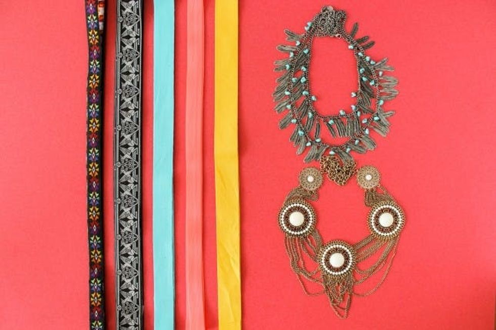 For embellishments, we used graphic trim, neon trim, and two statement necklaces found at Icing. Yes. Icing.