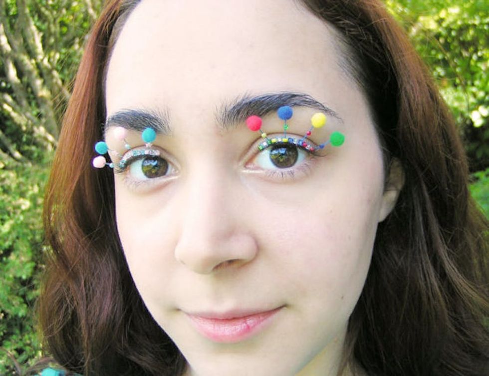 But before you decide to DIY this look, check out a few ready-made options that are available online. Some of our favorites so far are the Gumball Puffs ($25) and Neon Rainbow Feathers ($45) from Etsy seller Eyelash Jewelry. And get ready for a whole slew of creative options for you to choose from by next summer.