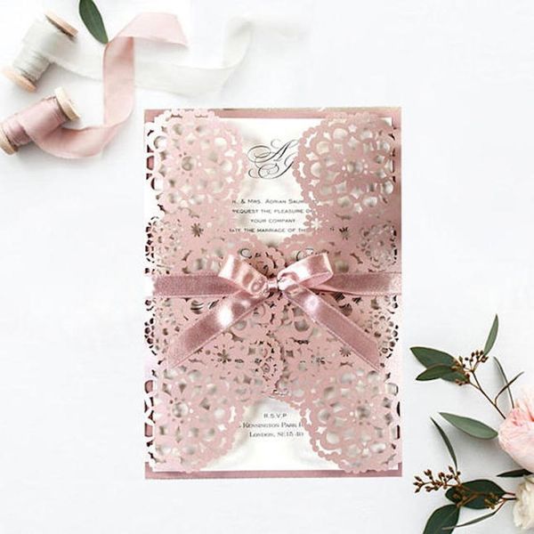 16. Cartalia Metallic Rose Die Cut Invitations ($4 each): Create a personalized invite that is picture-perfect with this embossed frame. The lace detail will make your names stand out in the best way.