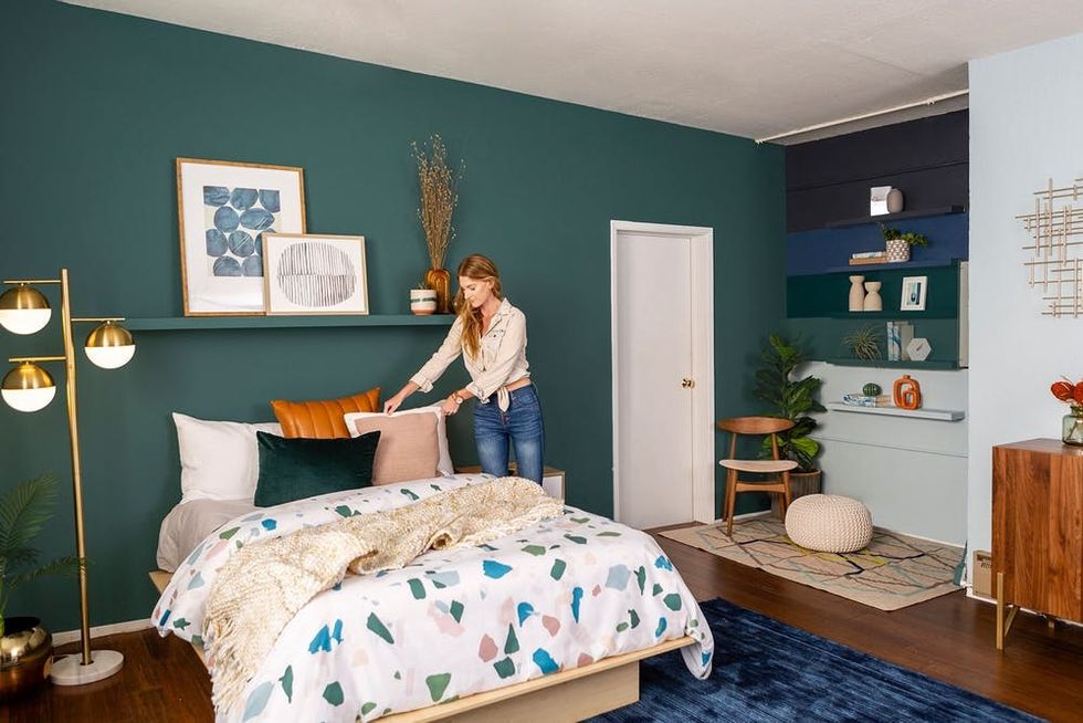 We’ll be the first to admit it — the idea of throwing a dark color on the wall can seem slightly overwhelming. Will it make the room feel dark? Will it make it feel smaller? How do those swoon-worthy interior designers pull it off anyway? The answer: bright textiles and minimalist decor that allow for breathing room and for even the deepest of hues to really shine. For our next room transformation, we teamed up with Sherwin-Williams to create a space fit for a bold, jet-setting Enthusiast.