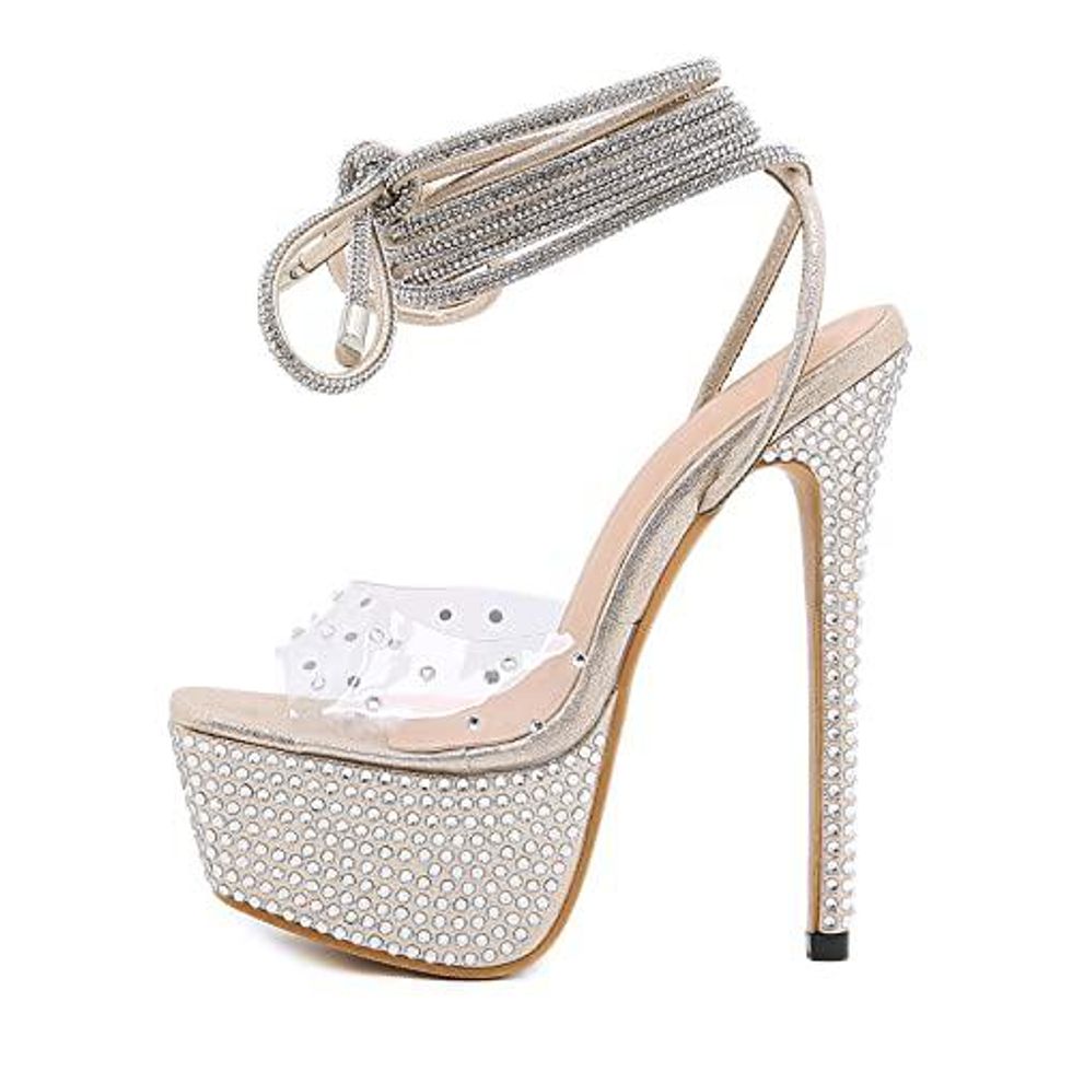 Every good outfit needs a matching pair of shoes that pull the entire look together. These pretty and dramatic lace up sparkly heels are sure to bring that bold outfit to the next level. They're pretty, trendy, and glittery.