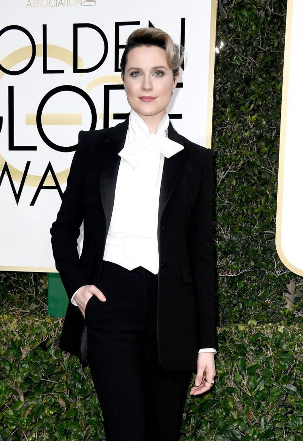 At the Golden Globes 2017, Evan Rachel Wood skipped the predictable gown and instead rocked the heck out of a sleek tux. “I love dresses; I’m not trying to protest dresses, but I want girls and woman to know that they’re not a requirement,” she said on the red carpet. Well, the Westworld actress put on yet another tux for her May 2017 Elle Canada cover, but this time, to pay tribute to the late David Bowie.