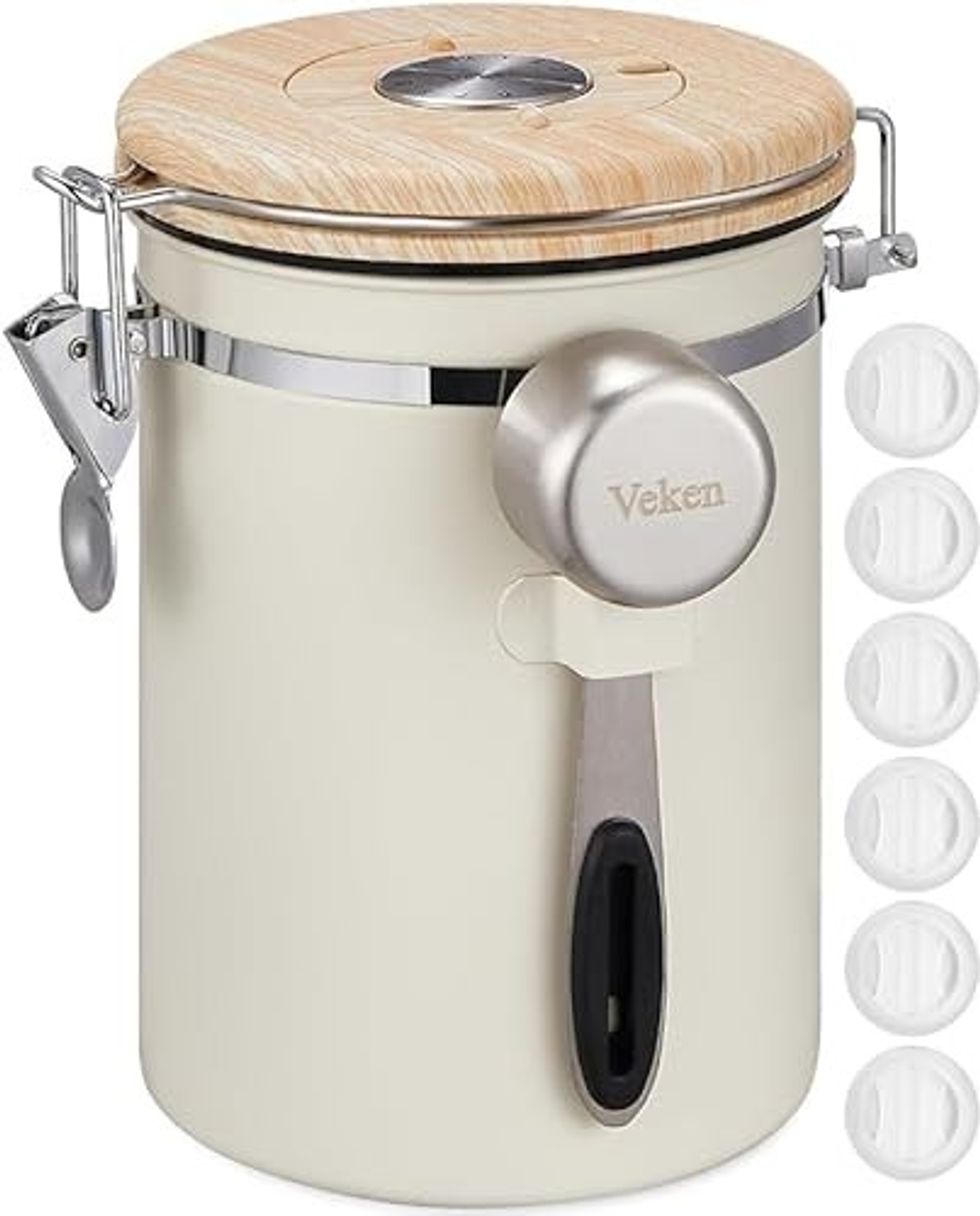 Perfect for your coffee station, this canister has a brilliant built-in date tracker to ensure you're never consuming expired goods. Plus it has a stainless steel scoop that hooks to the side so you have all your coffee essentials in one convenient spot. And of course, you can trust it's completely airtight to keep everything fresh.