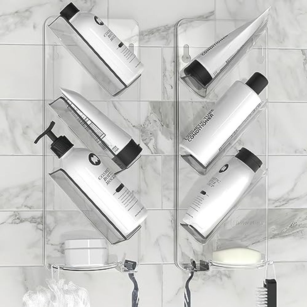 Keep your shower tidy and organized while enhancing the aesthetic with these shower caddies. They're made of acrylic that adds a modern, minimalist touch, and there's plenty of designated space for your bottles and shower accessories.