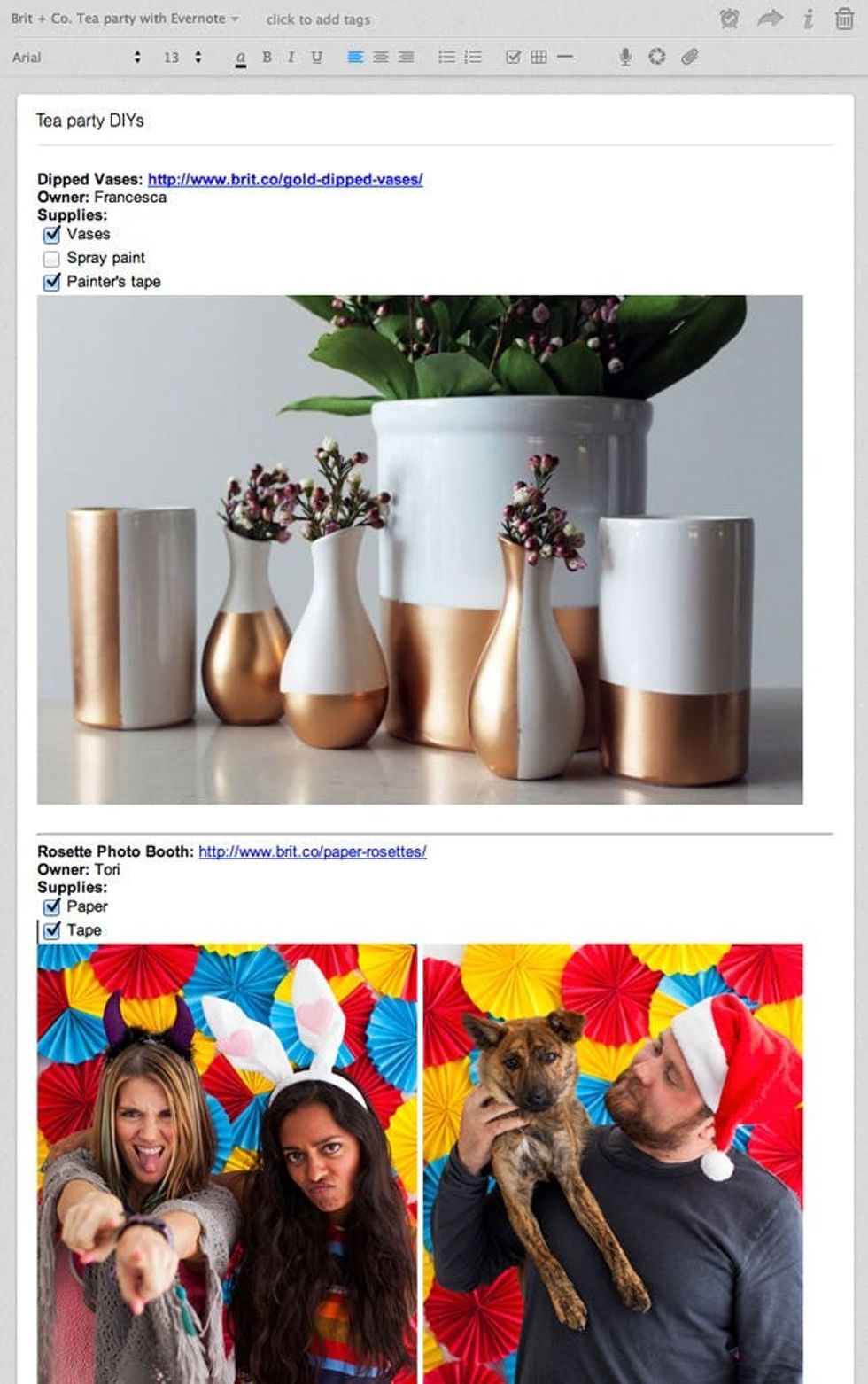 2. Share Your Notebooks: Once you have these well-organized notebooks for each subject, share ’em with your coworkers (or bridesmaids or roommates or whoever you’re planning the party with). You can collaborate on notes, make sure everyone is working from the same checklist, and more. Just make sure that you always sync so that you don’t end up with multiple versions of the same list.