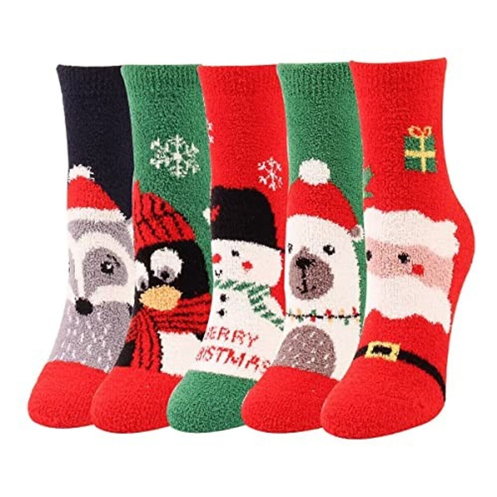 Stay in the holiday spirit with these fuzzy socks. They feature popular Christmas characters that can be mixed and matched for some added fun.