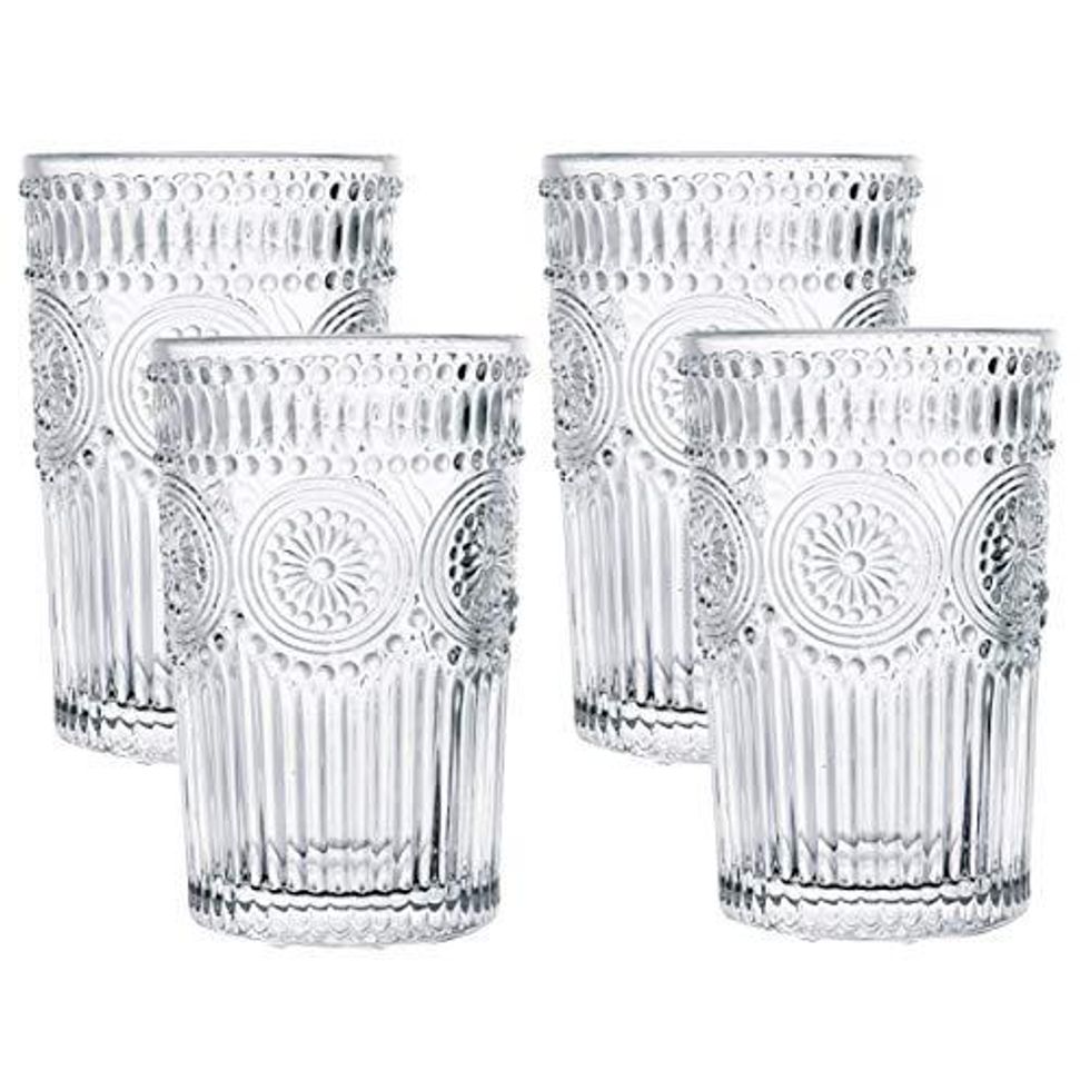Since we've had my husband's bachelor-pad glassware for over 15 years, I think it's time for an update. I landed on these romantic, global-inspired drinking glasses made from durable, heavy glass. The intricate embossed design is perfect for all types of drinks, from cocktails to milk. They're so pretty I'm going to use them year-round, not just for the holidays!