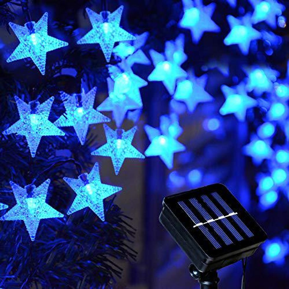 These blue star-shaped solar-powered string lights cast a magical glow wherever you place them! They're the perfect color for Hanukkah or a "Blue Christmas" (thanks, Elvis). The 30 foot string doesn't need any batteries or a plug, so you can get creative when it comes to hanging them.
