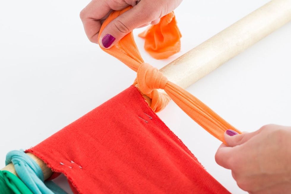 Method 1: The knot. This will keep the fabric hanging in a thin strip.
