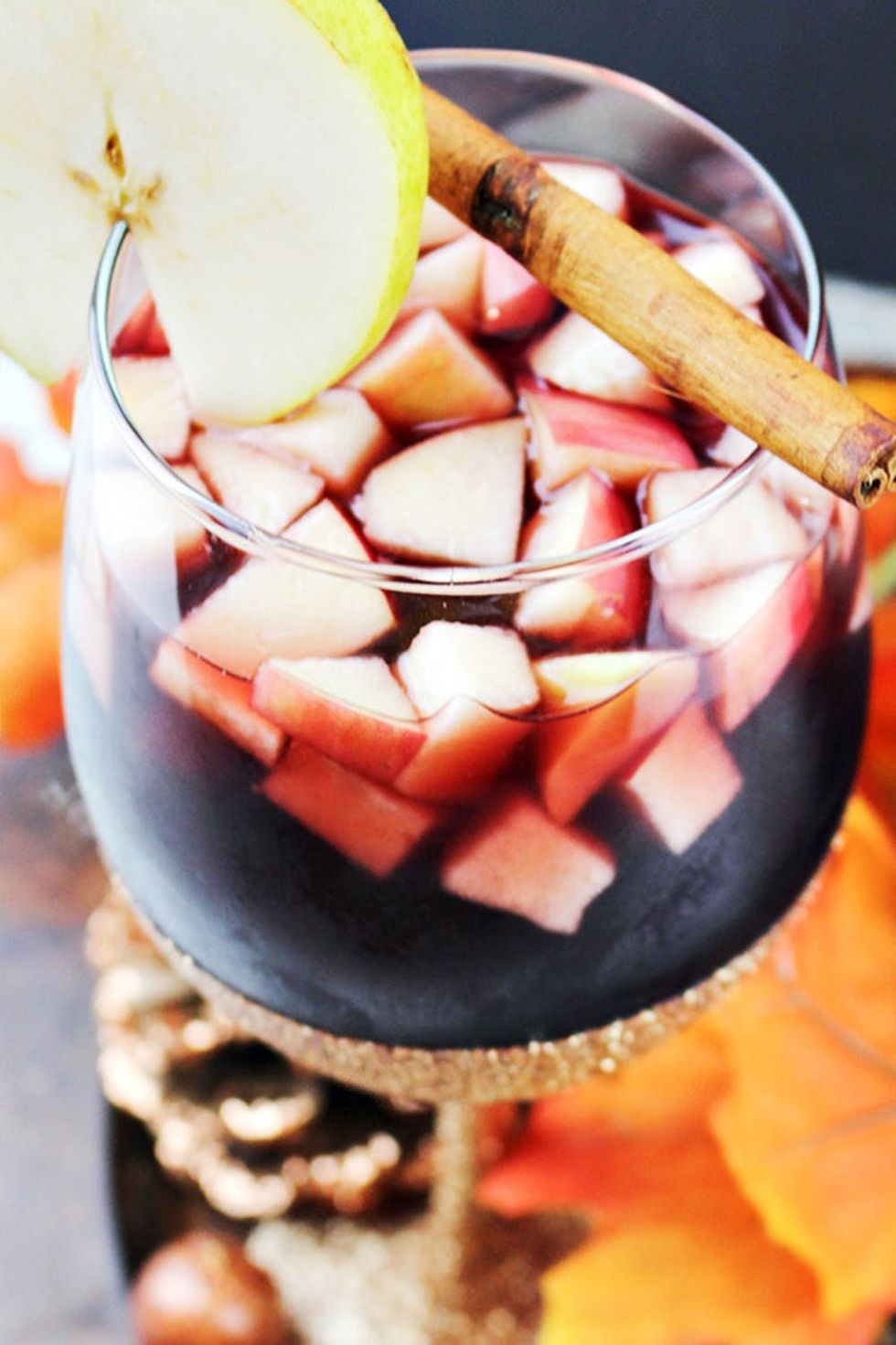 3. Autumn Apple and Pear Sangria: Sangria is so easy to make, and by the pitcher, no less. This one uses apples and pears as the fruit and will give your favorite red wine a seasonal kick. Bonus points if you have glittery glasses (which you can easily DIY). (via Home Cooking Memories)