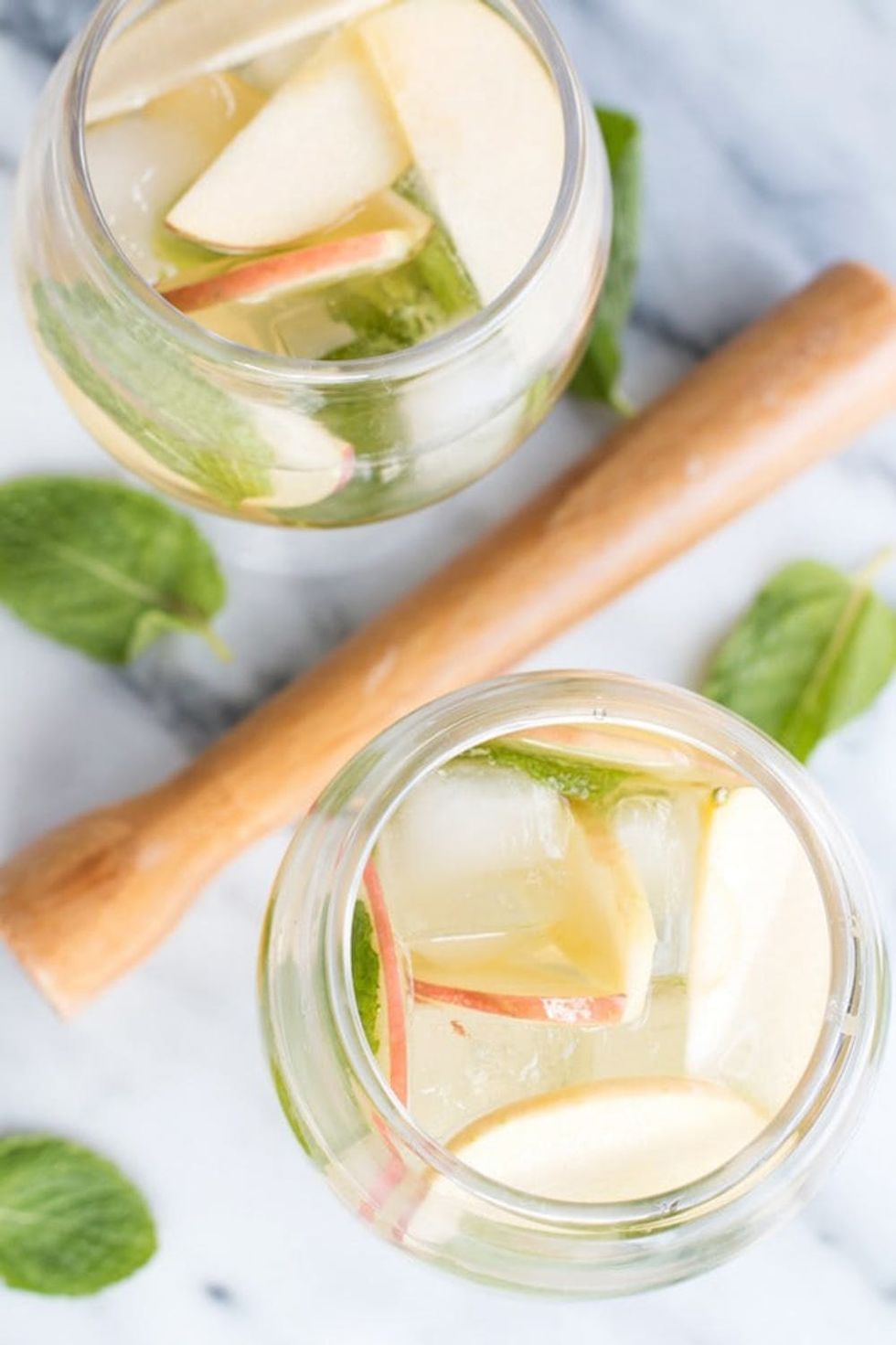 7. Apple Mojito: Go ahead; imagine how refreshing a white rum mojito will taste with a bit of apple juice. Expect the fresh mint and apple slices to create a next-level flavor you’ll want to sip all year long. (via Cake ‘n Knife)
