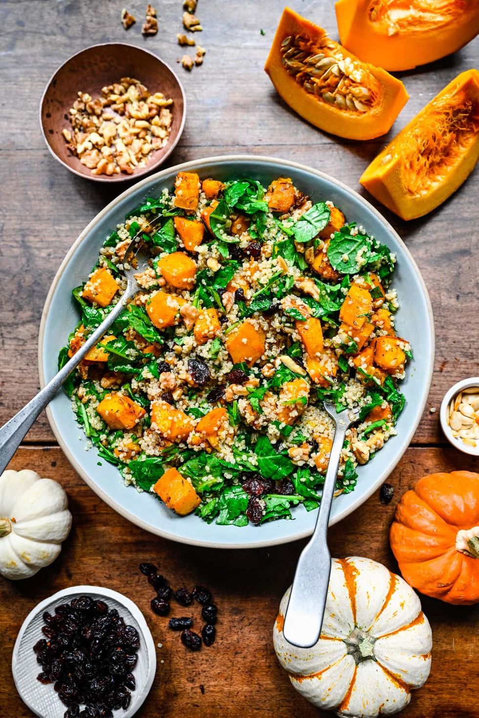 Aside from cozy sweaters, warm drinks, and scented candles, the best part of fall is the food. While soup might immediately come to mind as the ultimate easy autumn staple, salads are just as great (if not better). There's something about squash, pomegranates, apples, and pumpkin that gets our hearts pumping. And, we love that we can combine all of these amazing ingredients into a delicious and healthy meal that just feels like fall in a bowl!