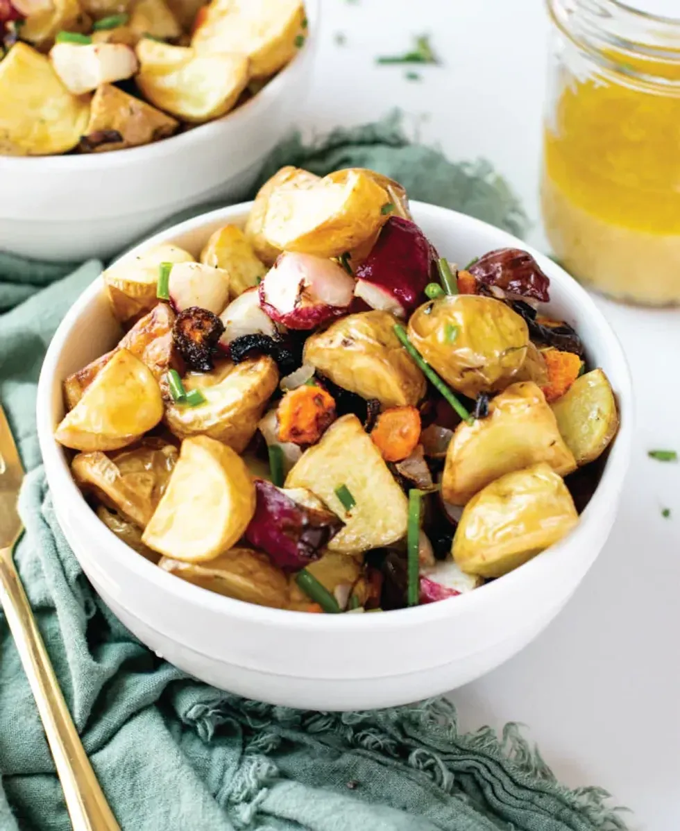 Sometimes fall nights call for something warm, and this salad delivers just that. Baby potatoes and roasted veggies make for a filling meal you'll turn to again and again. (via Clean Cuisine)