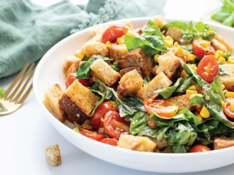 This delicious and unique salad is made with corn, tomatoes, and bread. It's super simple to whip together and is a great fall staple meal. (via Clean Cuisine)