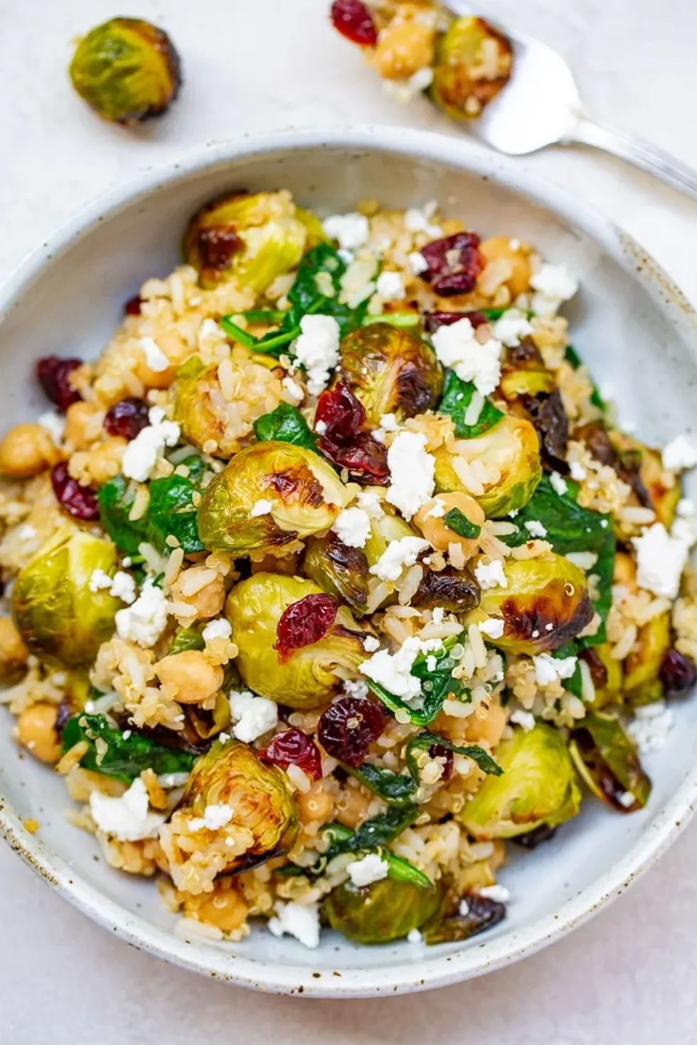 This salad has a robust flavor, thanks to all the Brussels sprouts! The chickpeas add a nice amount of protein and the rice adds the perfect texture. (via Averie Cooks)