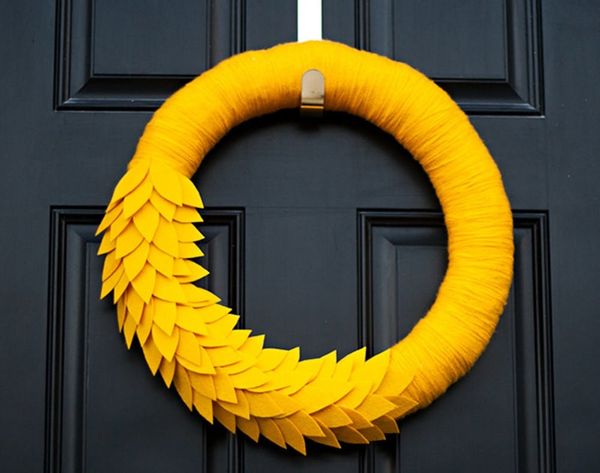 7. Golden Wreath: Fall has us thinking in oranges, golden yellows and browns. Whether you stick to one color like this blogger did or you decide to mix it up with multiple colors, we think this wreath is the perfect way to bring fall into your home. (via Tiffany Zajas Photography)