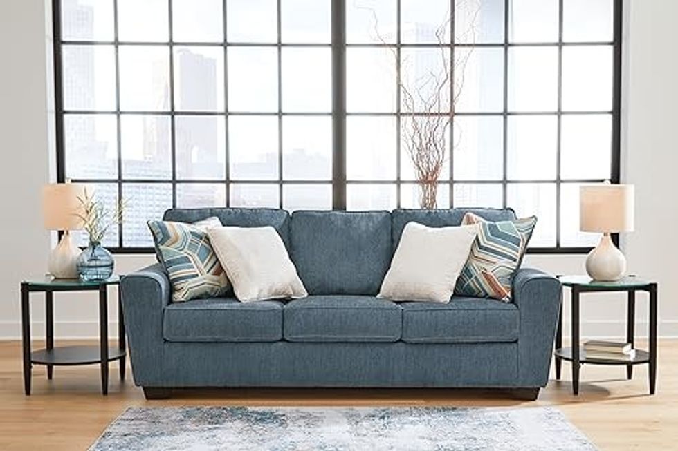 Create a comforting ambiance with this casual sofa. It will give your home a simple style refresh with calming blue hues.
