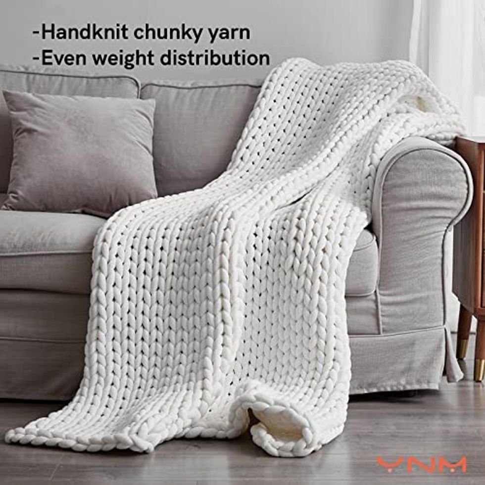 Calm your body and mind with a weighted blanket made from hand-knit chunky yarn. It will give your body even weight distribution to help you fall asleep faster.