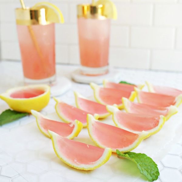 2. Pink Lemonade Jell-O Shots: These citrus slices are SOOOOO cute, and so easy-peasy to pull off. The color combo of pink lemonade in a crisp yellow rind makes them just perfect for a spring brunch. (via Laura Gummerman / A Beautiful Mess)