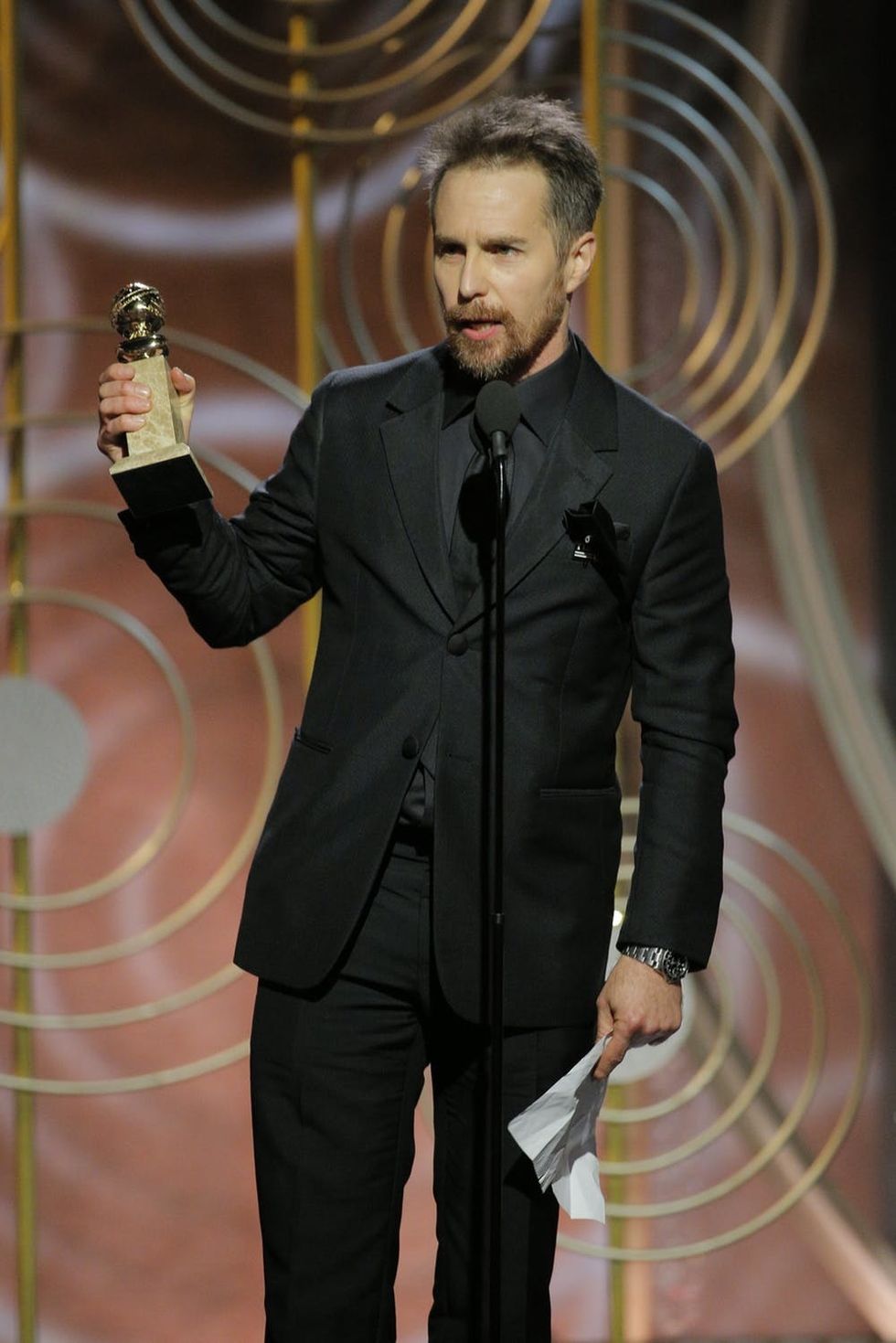 Besides Skårsgard, actor Sam Rockwell took home the Best Performance by an Actor in a Supporting Role in Any Motion Picture for his role in Three Billboards Outside of Ebbing, Wyoming. Rockwell, too, was conspicuously silent on the subject of gender inequality, despite the opportunity he had to make a statement in his acceptance speech.