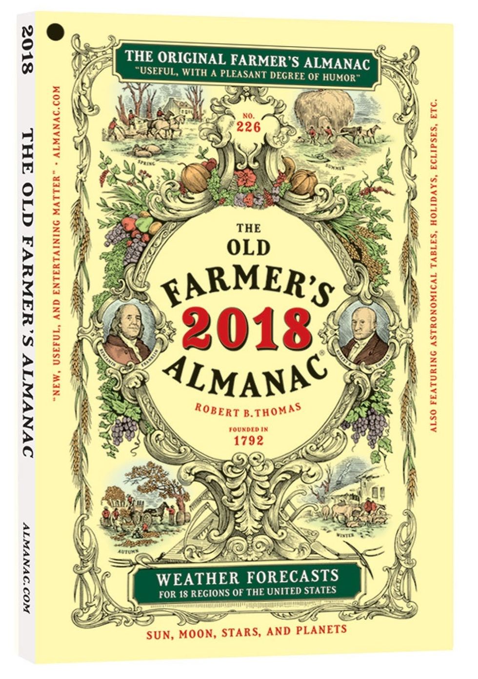 The soothsaying yearly reference book dates back to 1792 and has remained continually in print since — farmers, gardeners, and weather enthusiasts alike obsess over it every year. The almanac lists weather predictions, moon phases, planting charts, tidal calendars, and articles on astrology, meteorology, astronomy, and gardening.