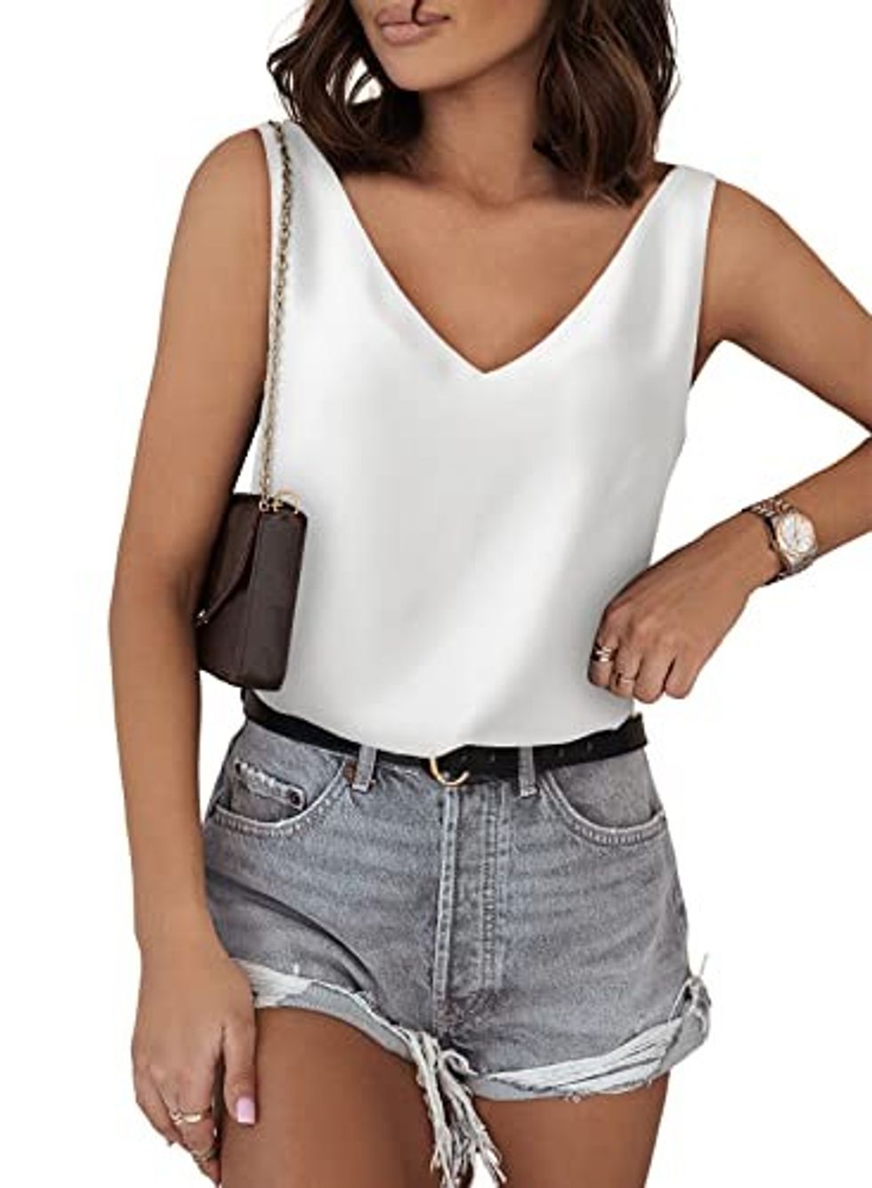 You don't have to be constricted to look classy. This sleeveless silky shirt is soft on the skin and perfect for summer. It can be pair with pants for work or jeans for a more casual vibe. It does come in 12 colors if you too like this style.